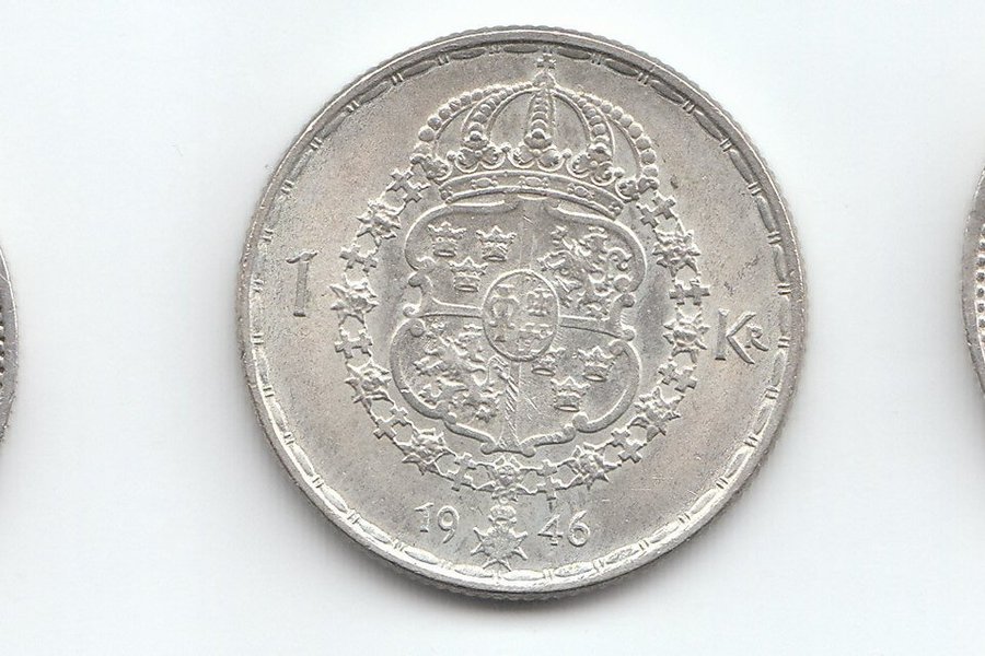 Tre stycken 1 krona. Årtal 1936, 1946 och 1939.