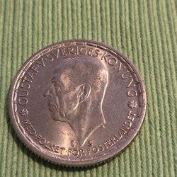 Silvermynt präglat 1950 med valören 2 kronor.