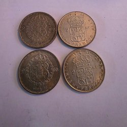 Två stycken 2 kronor från Sverige. Årtalen är 1929 och 1935.