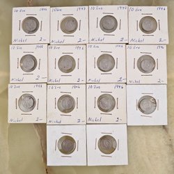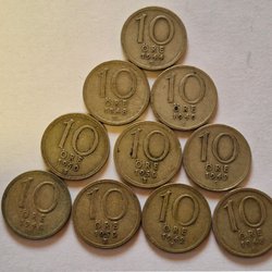 Parti med svenska ören. Innehåller två 50 öre, fyra 25 öre och två 10 öre.
