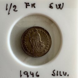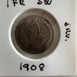 Ett mynt med texten "GEORGIVS V DEI GRA: REX ET IND: IMP" på ena sidan och en krönt krans på den andra. Myntet är märkt med "10 CENT" och "SILV.".