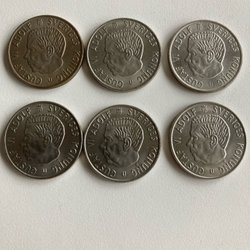 Sex st gamla 50-öringar. 1912, 1930, 1945, 1947 samt två st från 1948. Använt skick.
