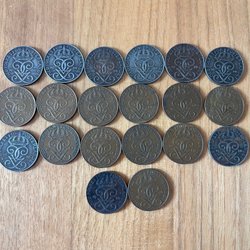 Parti med 40 stycken 10 öres mynt från Sverige. Varierande årtal från 1944-1961.