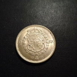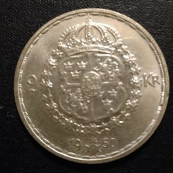 Silvermynt ,2 krona 40 % silverhalt mycket fint mynt god samlarkvalitet ,årtal 1950
