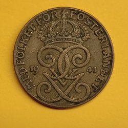 Gustav V. Mynt med valören 2 öre från 1941.