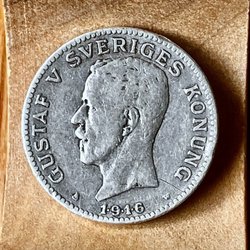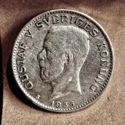 28 st 40% silvermynt årtal 1911, 1917, 1918, 1919, 1929, 2 st 1931, 1933, 1934, 1935, 2 st 1937, 1938, 11 st 1941, 3 st 1942, 1956. + 2 st nickel 1923, 1941.