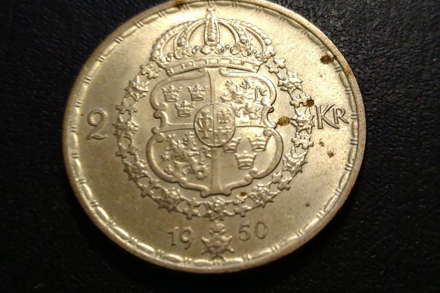 Detta är en 2 KR från Sverige, präglad år 1950.¨Silvermynt 40 procent silverhalt