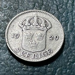 Detta är ett äldre svenskt mynt från 1929 med valören 25 öre.