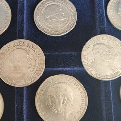 Parti med svenska mynt, total vikt 102 gram. Innehåller bland annat 50 öre från 1943, 1948 och 1956, samt 25 öre från 1950. Även mynt med valörerna 10 öre och 2 öre finns med.