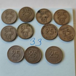 Parti med 40 stycken 10 öres mynt från Sverige. Varierande årtal från 1944-1961.