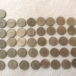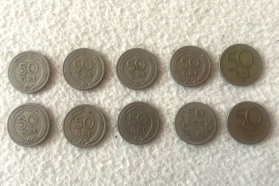 Parti med 10 stycken 50 öre mynt.
