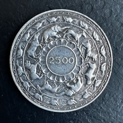 Två-krona från 1946 med Gustaf V. Baksidan visar Sveriges riksvapen. Samfraktar.