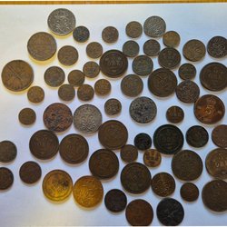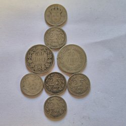 Sex stycken Gustaf V-mynt.