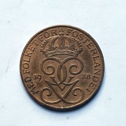 5 Öre från 1938. Värde: 5 Öre. Enl. Bild