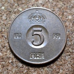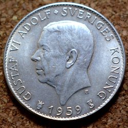 Gustav VI mynt från 1959, 1 öre 5`9 i kvalitet 8.