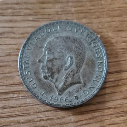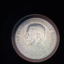 Svensk 5 krona från 1954 med Gustaf VI Adolf. Ej rengjort eller putsat.