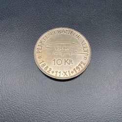 Två äldre svenska mynt. Ett mynt präglat 1954 med värdet 5 KR. Ett mynt präglat 1959 med Gustaf VI Adolf.