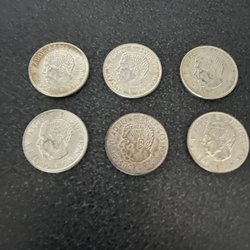 Samling av svenska 2 kronor från åren 1954, 1963, 1964 och 1965.
