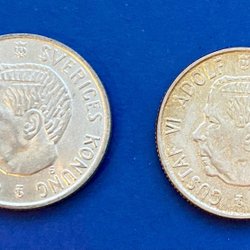 Svensk 2 krona från 1957. Valören är 2 kronor.