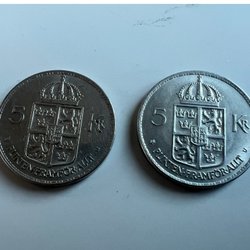 Två stycken 5 kronor från 1972.