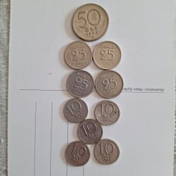 Parti med 7 svenska ören. Framsidan visar kungens monogram och årtal. Baksidan visar valören "10 ÖRE SVERIGE" för 6 av mynten och "25 ÖRE SVERIGE" för ett av mynten. Årtalen är 1963, 1963, 1969, 1970, 1971, 1972 och 1973.