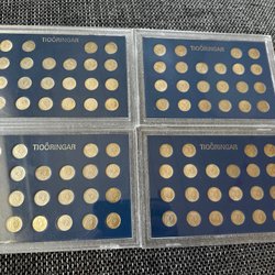 Parti med 49 stycken svenska 10 öre. Årtal inkluderar 1951, 1952, 1953, 1954, 1955, 1956, 1957, 1958, 1959, 1960, 1961, 1962, 1963, 1964, 1965, 1966, 1967, 1968, 1969, 1970, 1971, 1972, 1973, 1974, 1975. Valör 10 öre.