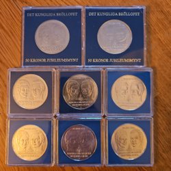 Svenska mynt präglade under Carl XVI Gustafs era berättar historien om en period av snabba förändringar, teknologiska framsteg, och sociala omvandlingar. Från 1970-talets industriella och kulturella blomstring till 2000-talets digitala revolution, har dessa mynt varit tysta vittnen till en dynamisk och ständigt föränderlig tid. Genom att samla på dem, blir man del av denna storslagna berättelse, sammanflätad i metall och tid. Om du bläddrar igenom Traderas rika utbud kommer du att stöta på en fascinerande samling av metalliska konstverk. Bland dessa finner man allt från jubileumsmynt, som firar speciella nationella evenemang eller årsdagar, till särskilda designförändringar som reflekterar tidsandan. Det finns också begränsade upplagor som endast präglades under en specifik period, vilka är särskilt värdefulla för samlare och historieentusiaster.