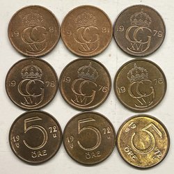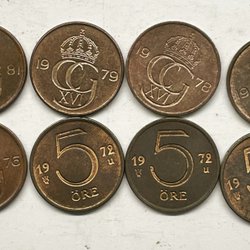 Svenska mynt präglade under Carl XVI Gustafs era berättar historien om en period av snabba förändringar, teknologiska framsteg, och sociala omvandlingar. Från 1970-talets industriella och kulturella blomstring till 2000-talets digitala revolution, har dessa mynt varit tysta vittnen till en dynamisk och ständigt föränderlig tid. Genom att samla på dem, blir man del av denna storslagna berättelse, sammanflätad i metall och tid. Om du bläddrar igenom Traderas rika utbud kommer du att stöta på en fascinerande samling av metalliska konstverk. Bland dessa finner man allt från jubileumsmynt, som firar speciella nationella evenemang eller årsdagar, till särskilda designförändringar som reflekterar tidsandan. Det finns också begränsade upplagor som endast präglades under en specifik period, vilka är särskilt värdefulla för samlare och historieentusiaster.