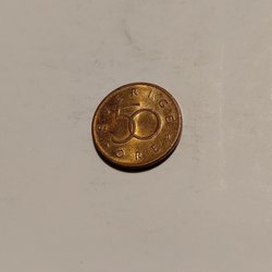 Ett 50 öre mynt från Sverige, präglat år 2000.