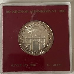 Ett minnesmynt präglat 1983 med valören 100 kronor. Myntet är tillverkat i silver 925/1000 och väger 16 gram.