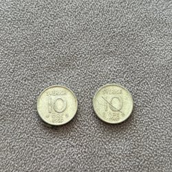 Två stycken minnesmynt från Sverige.
