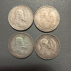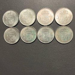 Fyra minnesmynt präglade till ära av Kung Carl XVI Gustaf och Drottning Silvias bröllop den 19 Juni 1976.