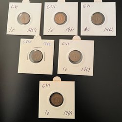 En samling av 5 öre från olika årtal. Inkluderar åren 1970, 1971, 1972, 1973, 1978, 1979, 1980, 1981, 1982, 1983 och 1984.