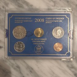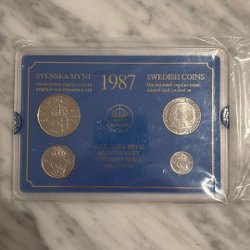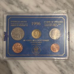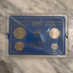 Fyra stycken svenska mynt. 5 Öre 1946. 1947. 1948. 1949