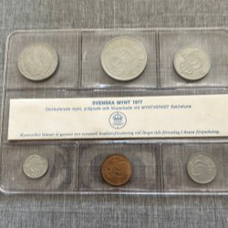En samling svenska mynt. Innehåller 5-kronorsmynt från 1985, 1988, 1990, 1991, 1992, 1993, 1994, 1995, 1996, 1997, 1998, 1999, 2000, 2001, 2002, 2003, 2004, 2005, 2006, 2007, 2008, 2009, 2010, 2011, 2012, 2013, 2014, 2015, 2016, 2017, 2018, 2019, 2020, 2021, 2022, 2023. Även 1-kronorsmynt från 1976, 1977, 1978, 1979, 1980, 1981, 1982, 1983, 1984, 1985, 1986, 1987, 1988, 1989, 1990, 1991, 1992, 1993, 1994, 1995, 1996, 1997, 1998, 1999, 2000, 2001, 2002, 2003, 2004, 2005, 2006, 2007, 2008, 2009, 2010, 2011, 2012, 2013, 2014, 2015, 2016, 2017, 2018, 2019, 2020, 2021, 2022, 2023. Samt 50-öresmynt från 2009 och 10-kronorsmynt från 2016.