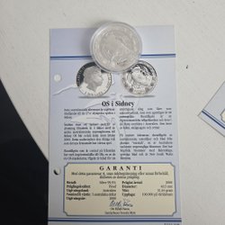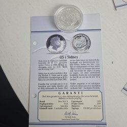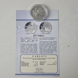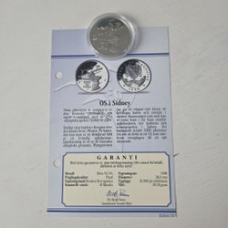 Detta mynt från OS i Sydney är präglat av myntverket i Kongo och markerar de 27:e olympiska spelen i Sydney år 2000. Framsidan har en mästerligt sätt förenat det sportsliga med det genuint australiensiska. I bakgrunden skymtas det berömda operahuset i Sydneys hamn. I förgrunden ser vi en modern atlet – en kvinnlig simhoppare, i utsökt position. Simhopp anses vara en krävande sport, och uppstod som tävlingsidrott i Europa i slutet av 1800-talet. Höga hopp infördes som olympisk gren för män 1904, Stockholm kom 1912 och 1920. Åsidan avbildar Kongos riksvapen, med ett lejon och inskriptionen Banque Centrale – République Démocratique du Congo. Som gammal fransk koloni har landet ännu starka band till Frankrike. Kongos myntenhet är franc. Utgivningsår: 1999. Värde: 10 Francs. Serienummer: ES00869.