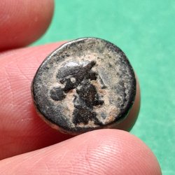 Åtsida: Athenas hjälmförsedda huvud