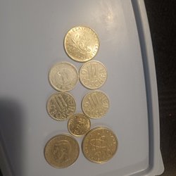 Samling av två mynt. Inkluderar ett mynt med värdet 100 PTAS och ett mynt från 1999.