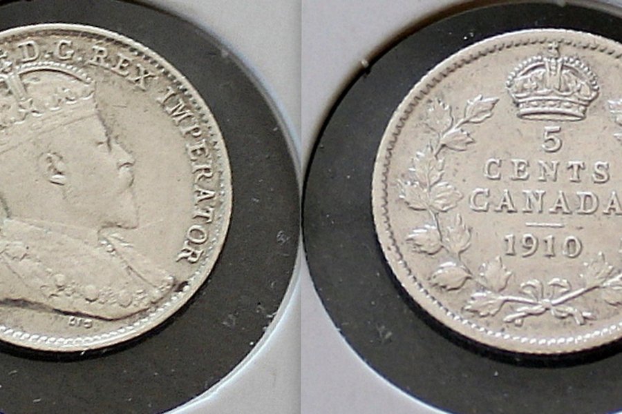 Ett Kanada 5 cent från 1910.