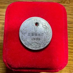 Detta är en Morgan silverdollar från 1921. Framsidan visar ett vänsterprofilporträtt av Lady Liberty. Baksidan visar en örn med utbredda vingar. Föremålet väger 26.78 gram.