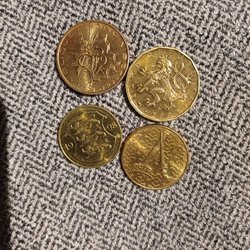 En samling av olika mynt från olika länder .