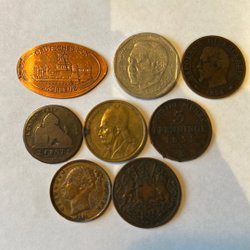En varierad samling av äldre mynt från olika länder och årtal. Inkluderar mynt med valörer och årtal som 5 Francs 1904, 5 Ore Danmark, 50 Francs Maroc. Perfekt för samlare. Fler bilder finns om så önskas.