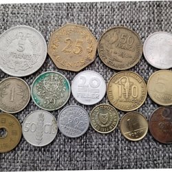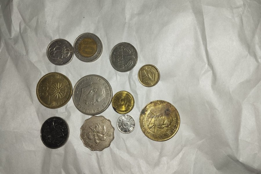 En samling av olika utländska valutor. Inkluderar bland annat: - 1 Deutsche Mark från 1988 - 10 Dollars från 1994 - 100 Drakmer