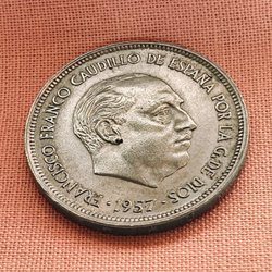 Detta är ett samlarobjekt från Spanien, präglat 1975 med ett nominellt värde av 25 PTAS.