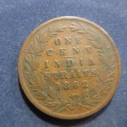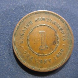 Detta är en Straits Settlements 1 Cent från 1874. Föreställer Drottning Victoria.