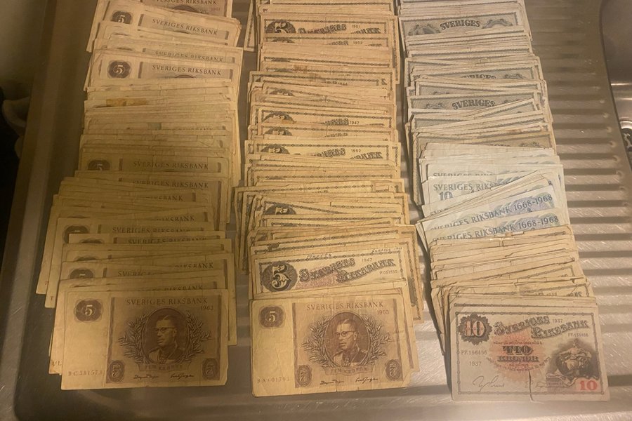Samling av äldre svenska sedlar.