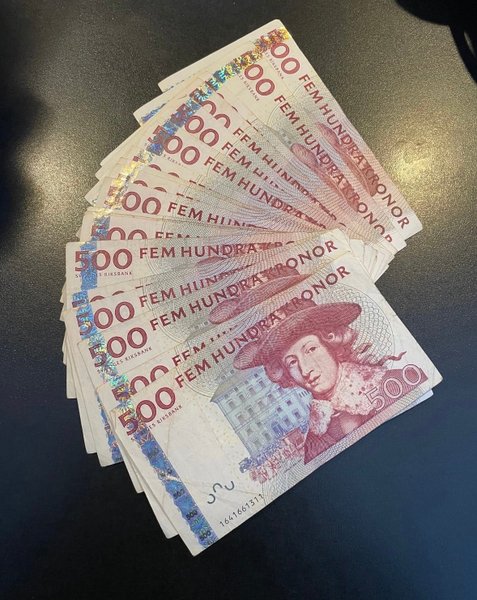 Här är en samling 500 kronors sedlar.
