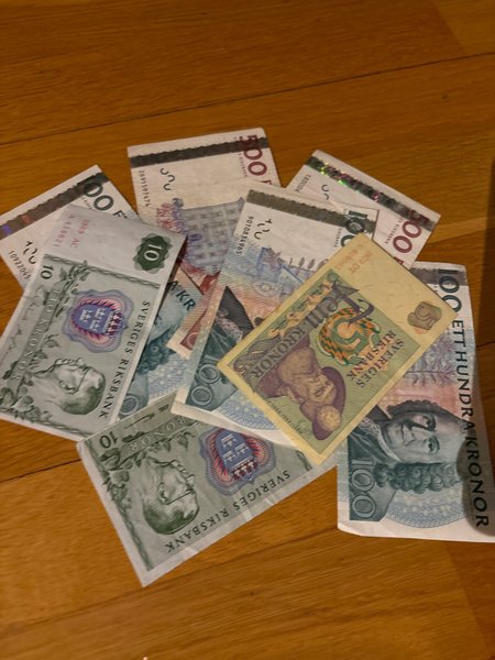 Fina svenska sedlar värde 1325 kronor