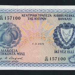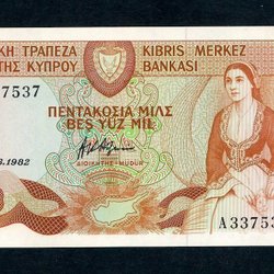 En Cypern sedel med värdet 1 Lira från 1998. Serienummer Z718526.