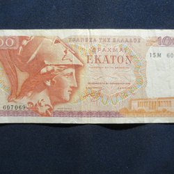 100 Drachmer 1955, 1000 Drachmer 1987. Mkt fina sedlar